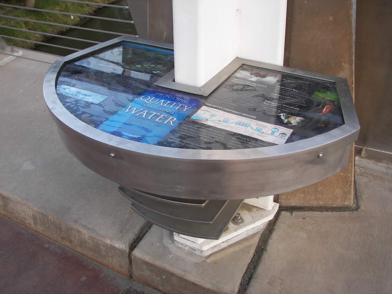 Cody fabricated architectural metals and the structural steel building for this unique pumping station designed to look like a butterfly in the Sacramento River. It sucks water in from the river. We built cable railings, Light posts shaped like sails, information Kiosks, and a stainless steel dome to feature a feather weather vane.