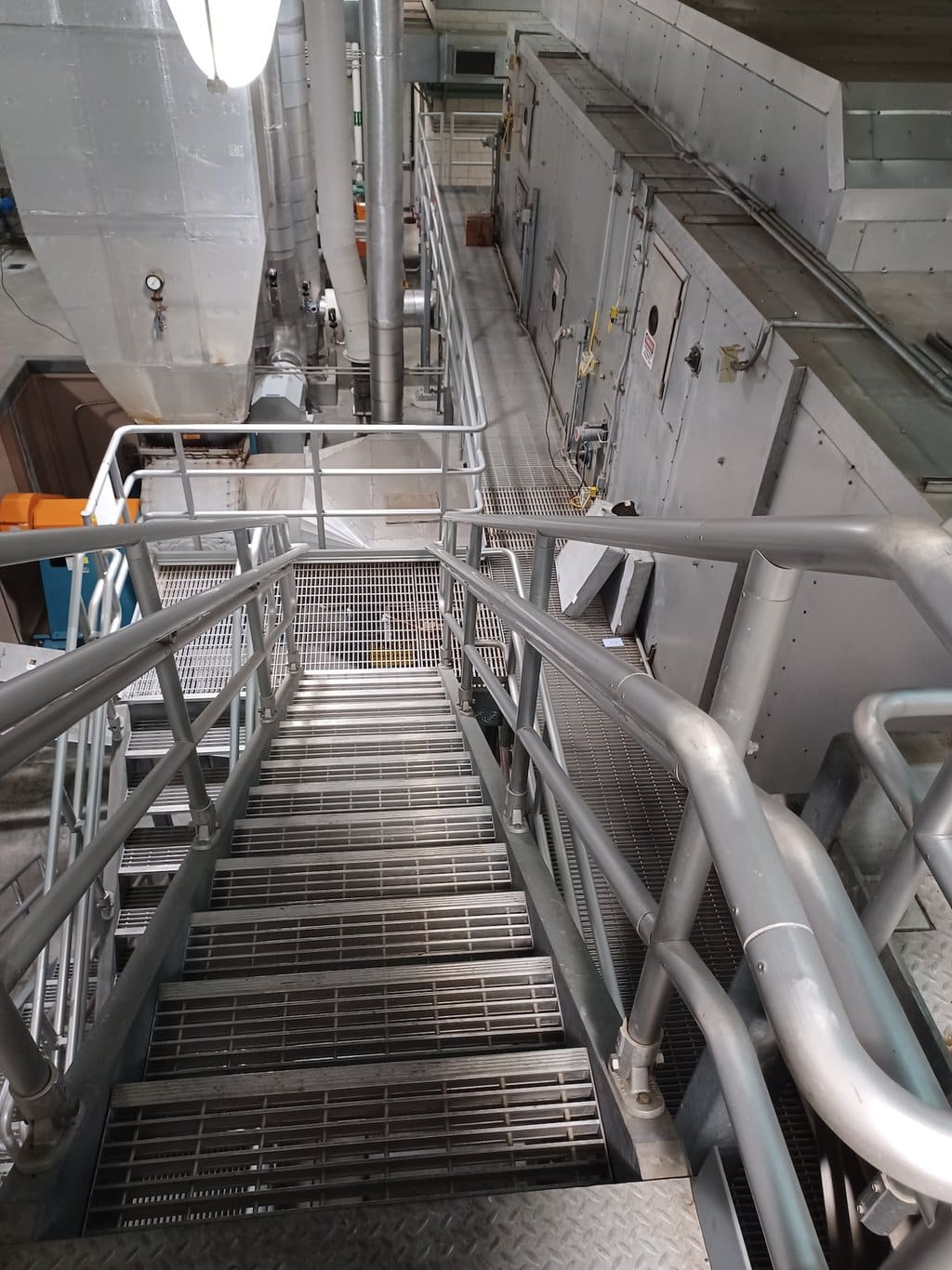 Update Jan 2024. The Dryer platform in the solids handling building used aluminum railing and aluminum grating and treads on Galvanized steel stair stringers and platform framing. There was no isolation applied between the hot dip galvanized steel and the aluminum material. As you can see from the attached photos taken 12 ½ years after installation there is no evidence of corrosion between the galvanized steel and the aluminum.