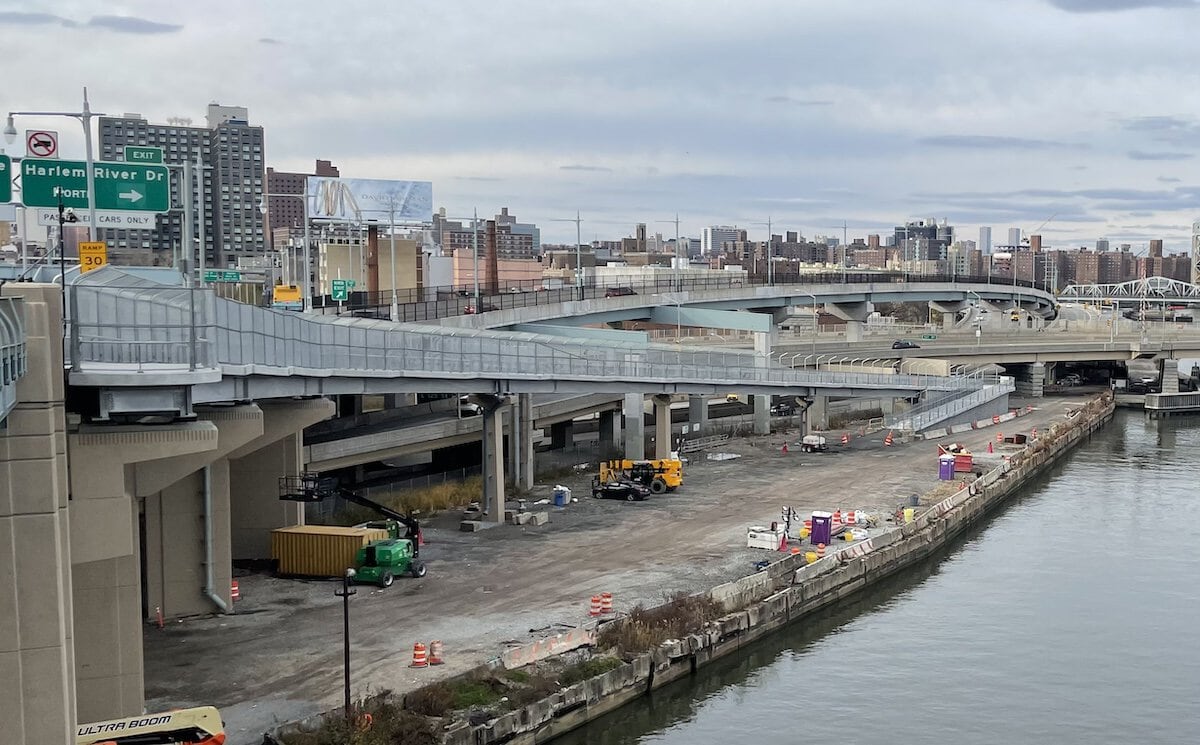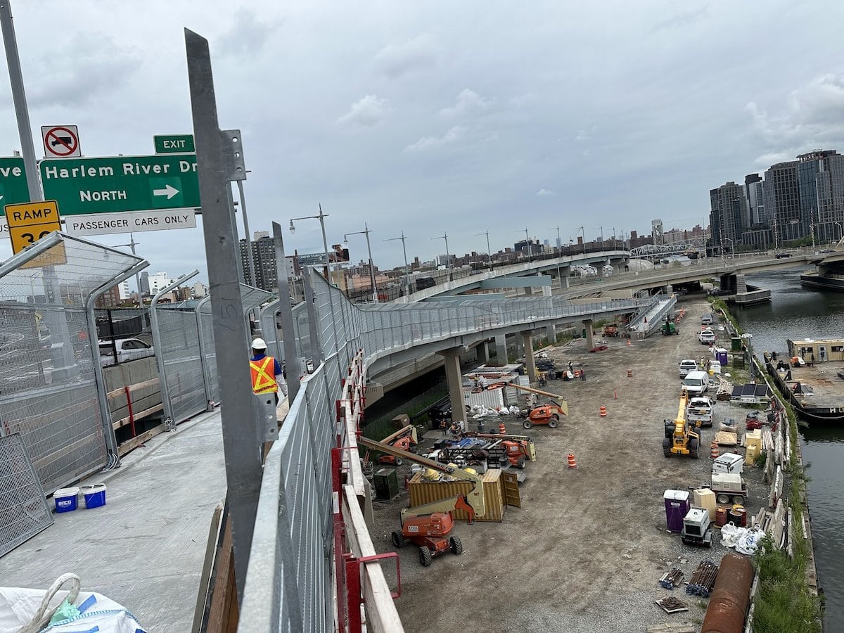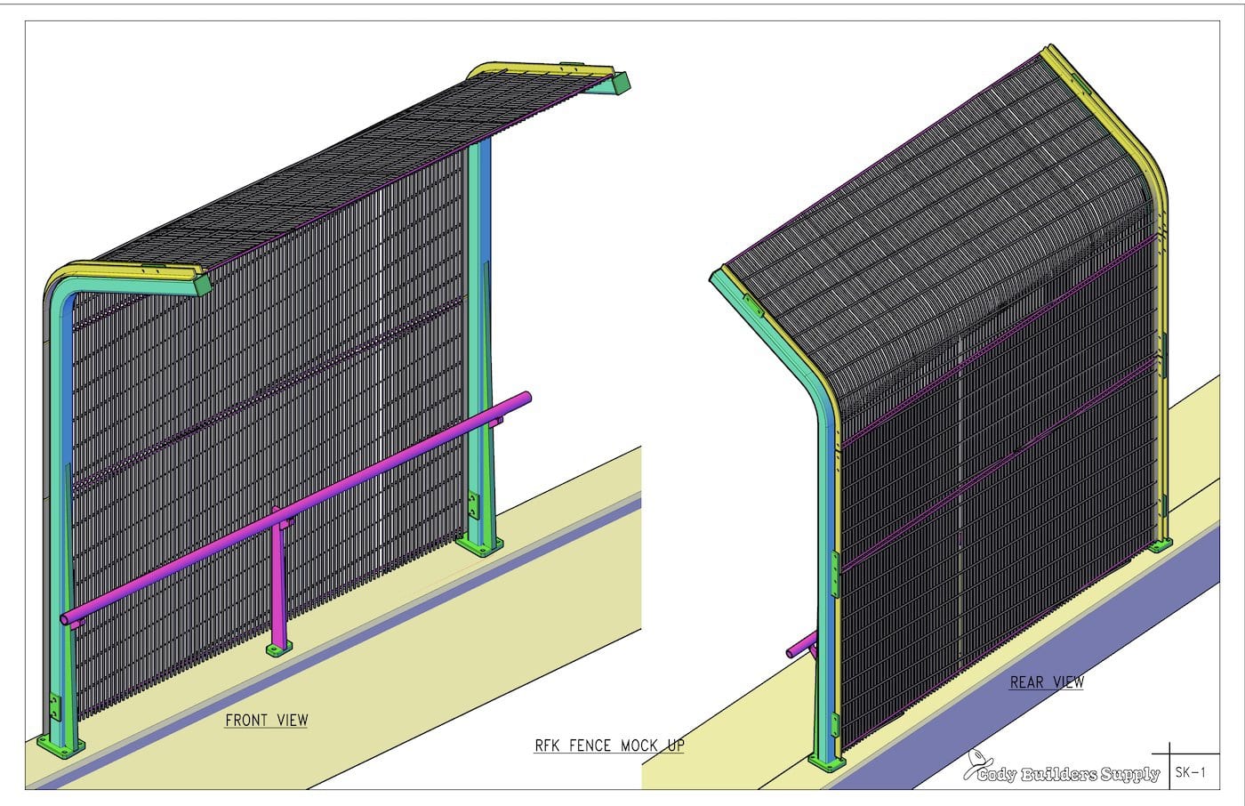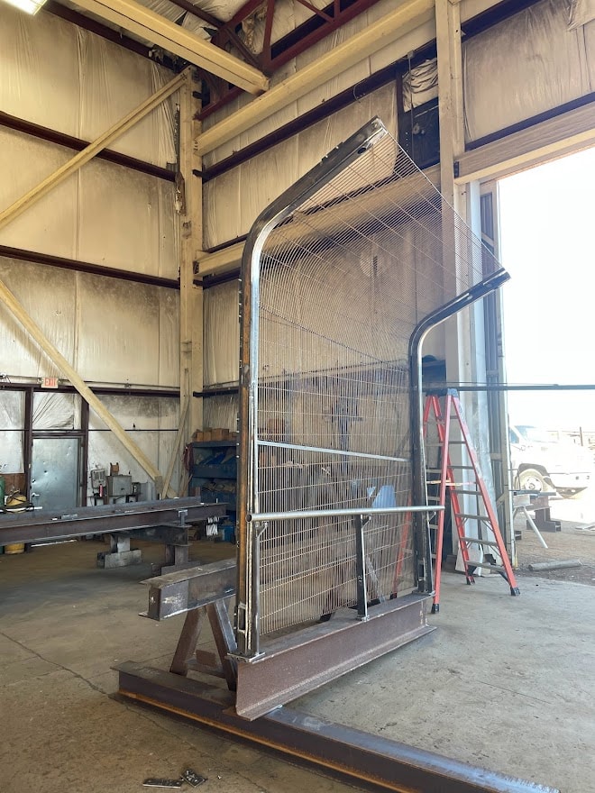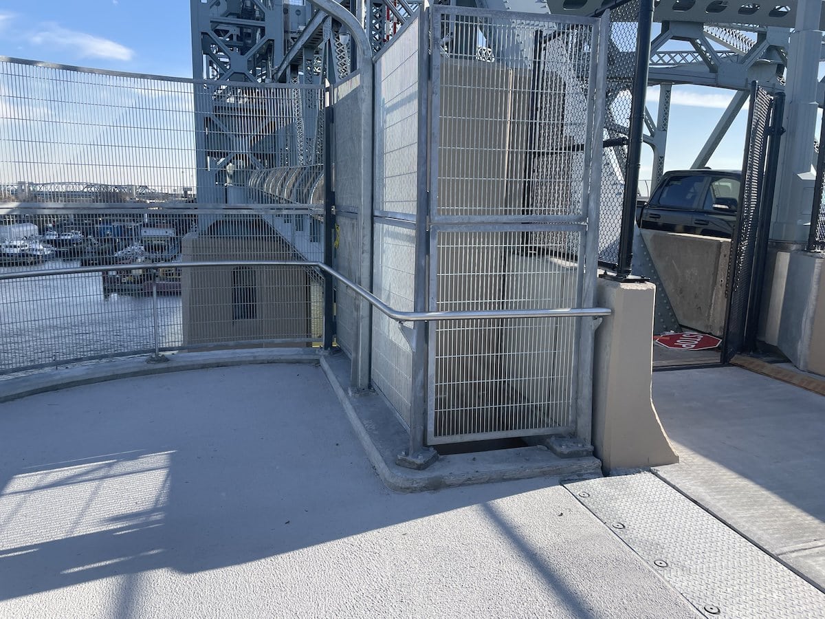 This pedestrian bridge fence for the RFK Bridge in New York uses curved, sloped wire mesh which leans inward. We helped the designer, COWI to develop some details of the fence. The challenge was to roll the mesh while sloping it. We had to try different wire mesh types and methods of rolling to get it to work. A mock up was key to solving getting it right. By leaning into the mock up and kicking it around we corroborated with the design team to add some final tweaks to the fence to make it more rigid. There are some things that you just have to put there and play with rather than staring at numbers on the screen.